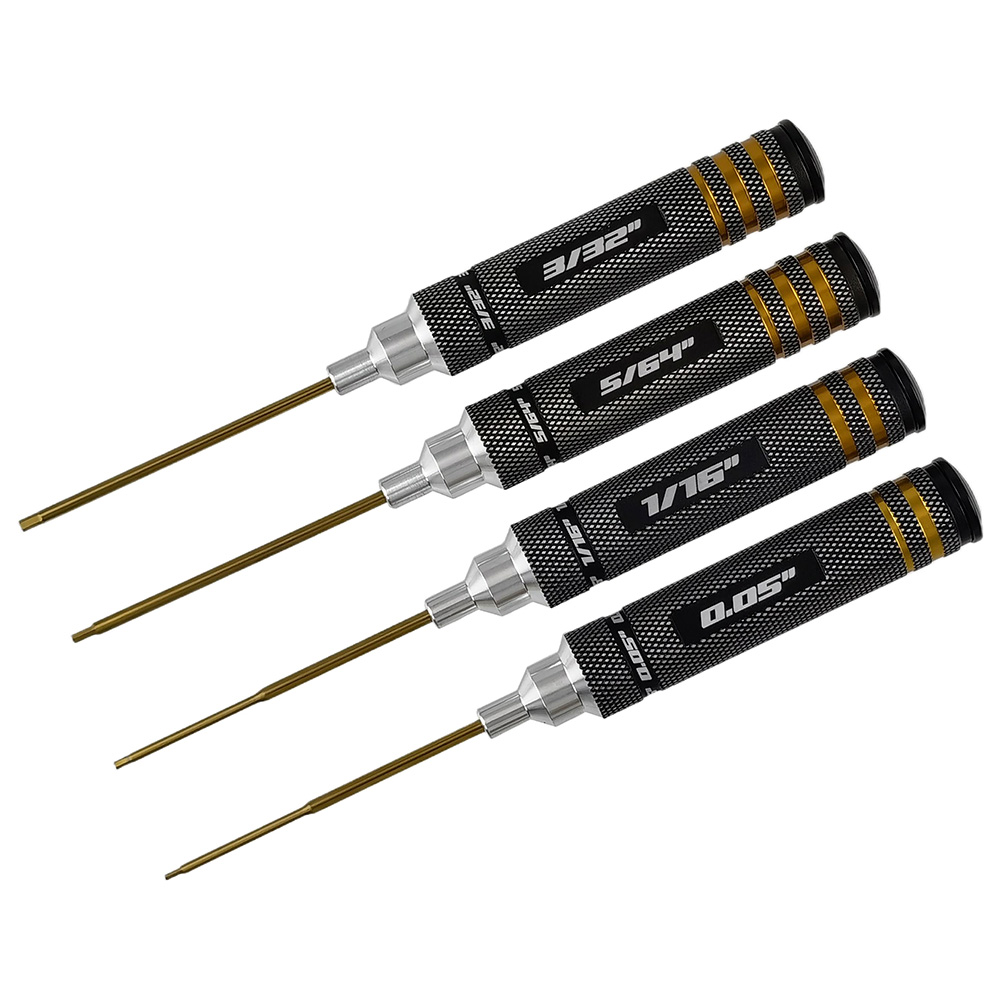 Pro Big Handle RC Hex Driver / Allen Wrench Set, SAE Standard (Inch) 0.05", 1/16", 5/64", 1/32", Titanium Coated Tips, 4-Pieces